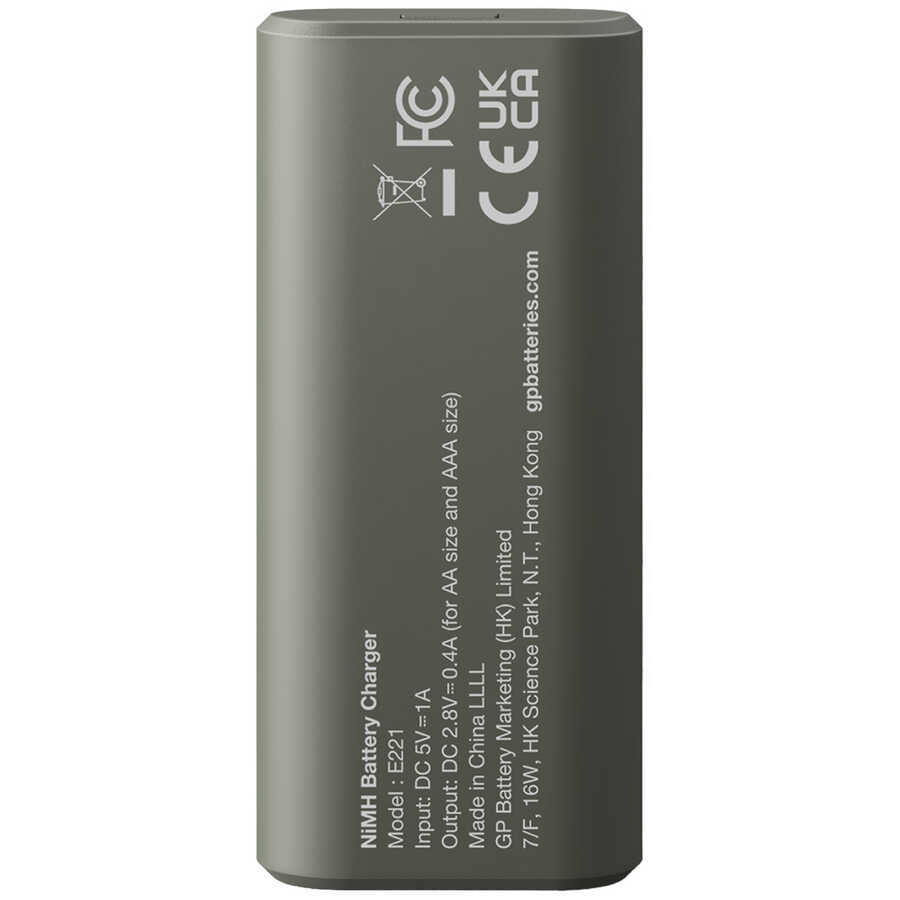 GP ReCyko E221 USB Şarj Cihazları, ilk kez NIMH şarj edilebilir kullanıcıları hedefliyor. Tüketici elektroniği cihazlarında en güvenli güç ve iletişim portu olarak algılanan USB portunun popülaritesinden yararlanan bu modeller, 2600mAh AA veya 950mAh AAA pili sırasıyla yaklaşık 8 ve 4 saatte şarj edebilen ekonomik şarj çözümü sunar. Küçük boyutlu, hafif ve kompakt, şarj durumunu görüntülemek ve arızalı, bozuk pilleri tespit etmek için LED göstergeli.