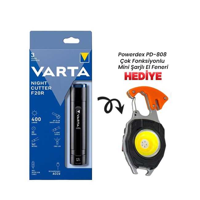Gelince Haber VerKompakt Tasarımda Yüksek Işık Verimliliği: Varta Night Cutter F20R – 18900 modeli, günlük taşınabilirlik ile yüksek aydınlatma performansını birleştiren şarj edilebilir premium bir el feneridir. Fener, güçlü ve özel optikli 6 Watt CREE LED (özellikle Cree XPG3 LED, CCT5000K) kullanır ve maksimum 400 lümene kadar ışık çıkışı sağlar. Bu kompakt boyuta göre güçlü olan ışık akısı, fenerin etkili aydınlatma menzilini yüksek modda 147 metreye kadar taşır. Fenerin "Night Cutter" serisine özgü özelliklerinden biri, ışık demetini bir noktadan geniş bir alana hassas bir şekilde odaklama yeteneği sunan özel optik sistemidir. Bu odaklama esnekliği, hem uzak hedefleri net bir şekilde görmek hem de yakın çevreyi geniş bir açıyla aydınlatmak için ideal bir denge sunar.